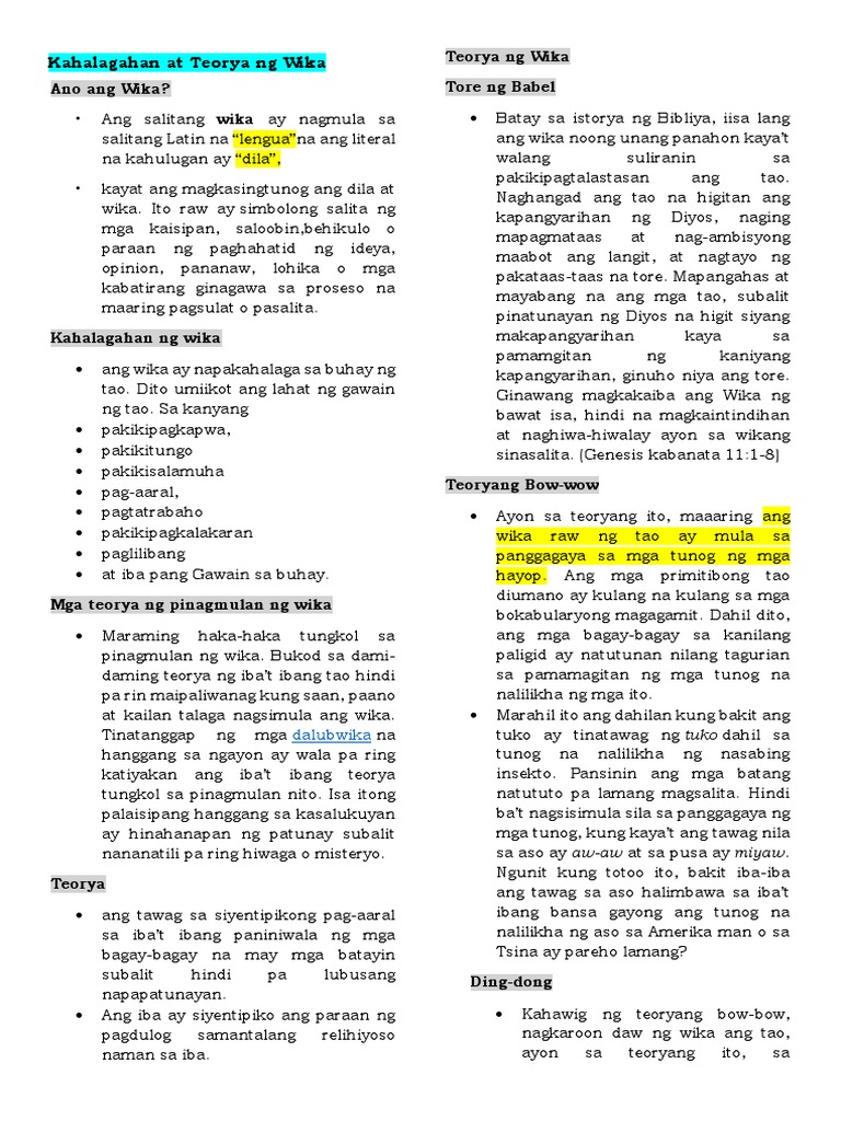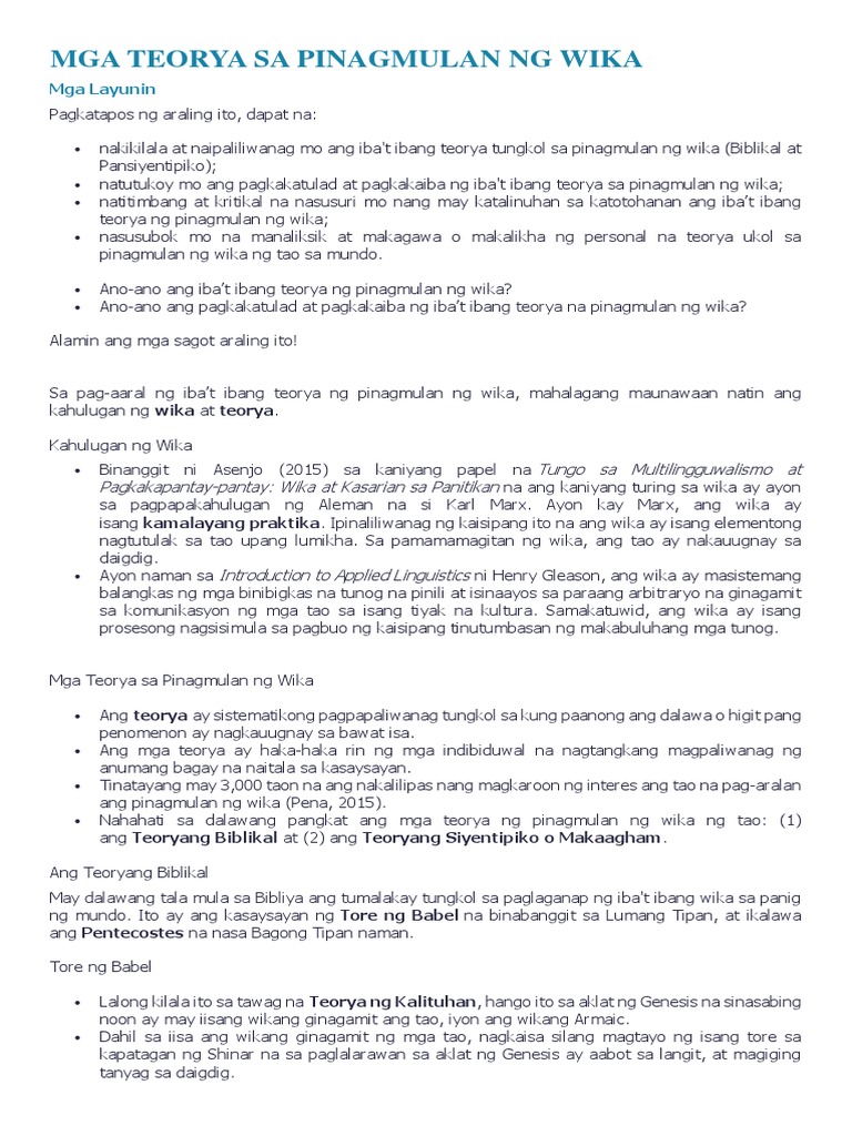 Teorya Ng Wika Mga Teoryang Pinagmumulan Ng Wika
