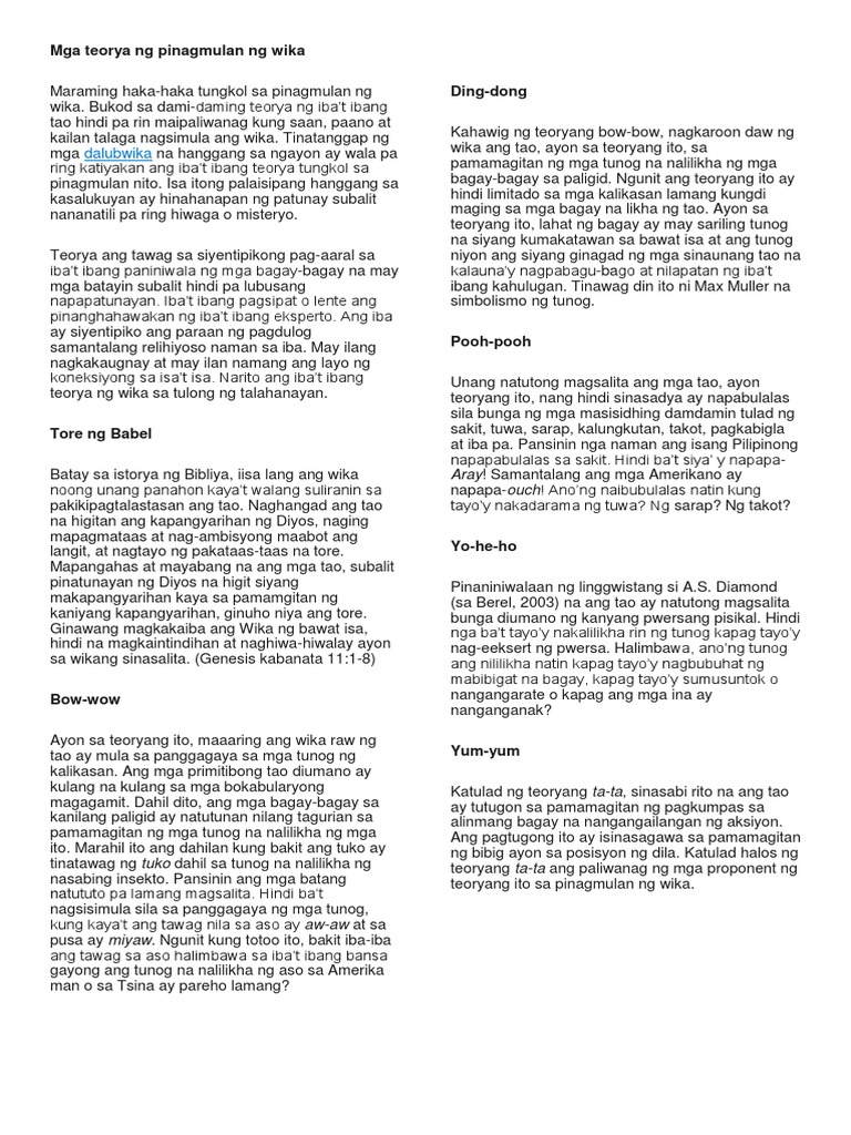 Mga Teorya Sa Pinagmulan Ng Wika Docx