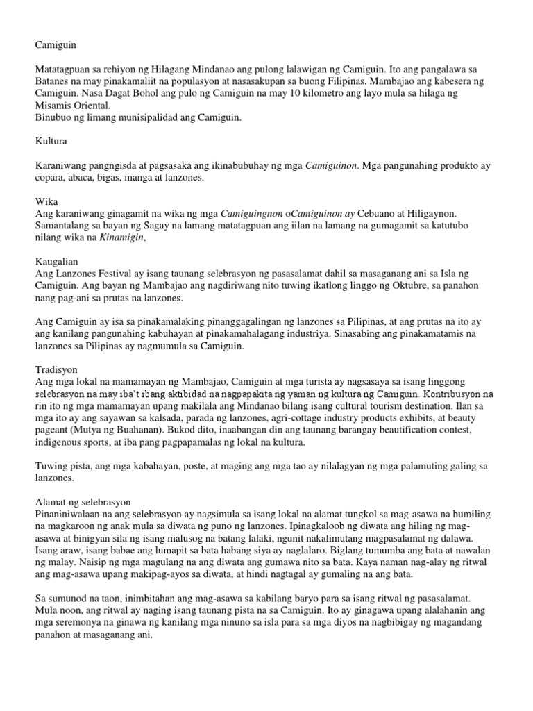 Camiguin Matatagpuan Sa Rehiyon Ng Hilagang Mindanao Ang Pulong Lalawigan Ng Camiguin