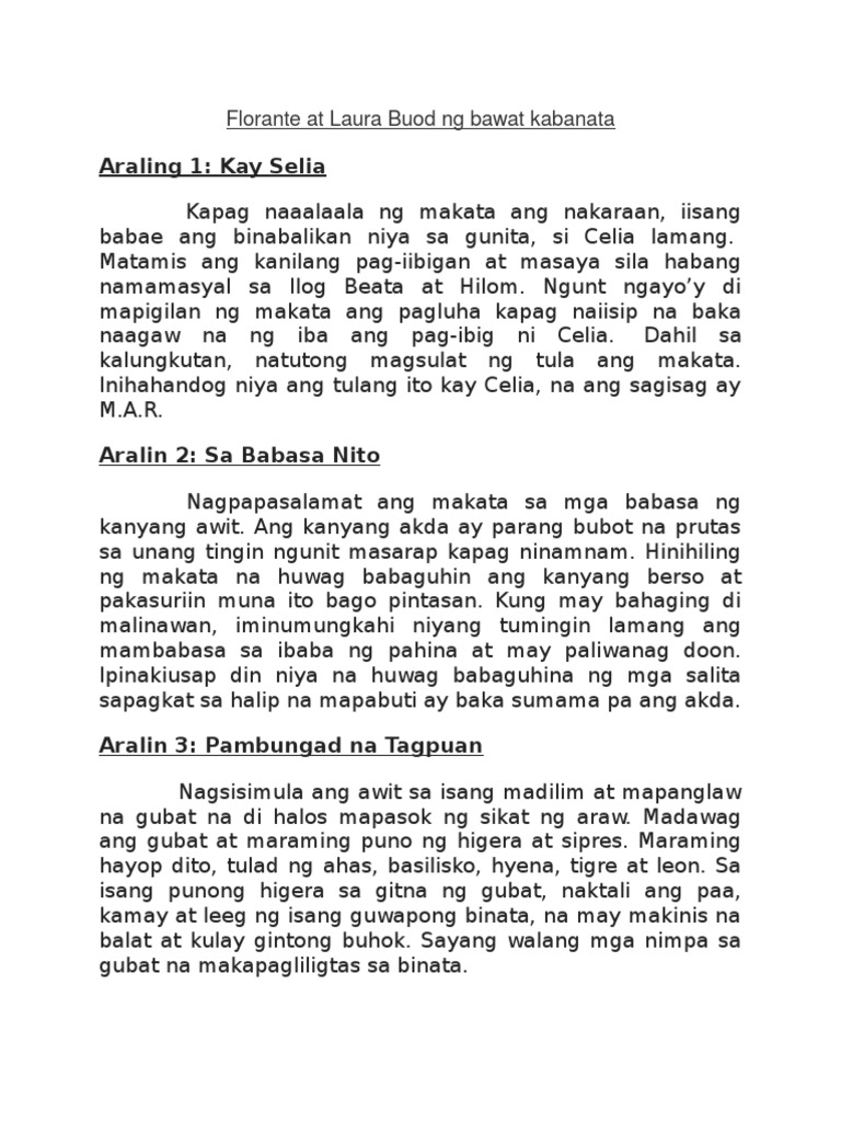 Florante At Laura Buod Ng Bawat Kabanata