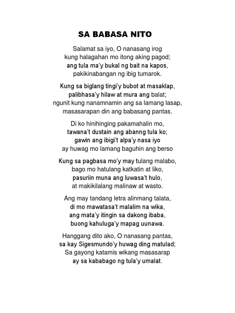 222018 Sa Babasa Nito. 2412020 Sa Babasa Nito. Ngunit kung namnamin ang sa lamang lasap Masasarapan din ang babasang pantas 10.