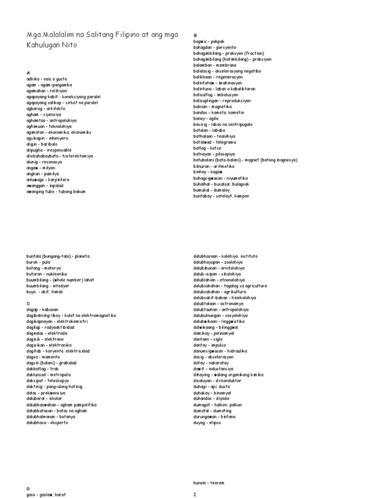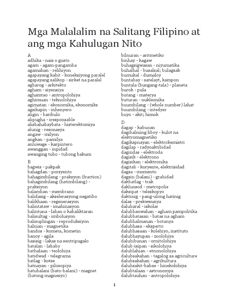 Mga Malalalim na Salitang Filipino at. Bulagsak agapayang kabit - koneksiyong paralel bumukal - dumaloy agapayang salikop - sirket na paralel buntabay - satelayt kampon agbarog - arkitekto buntala. 2722017 Tila ang Wikang Filipinoy kinalakihan na ng karamihan sa atin.