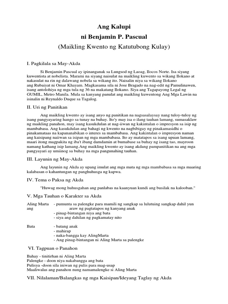 Ang Kalupi Maikling Kwento Ng Makabanghay