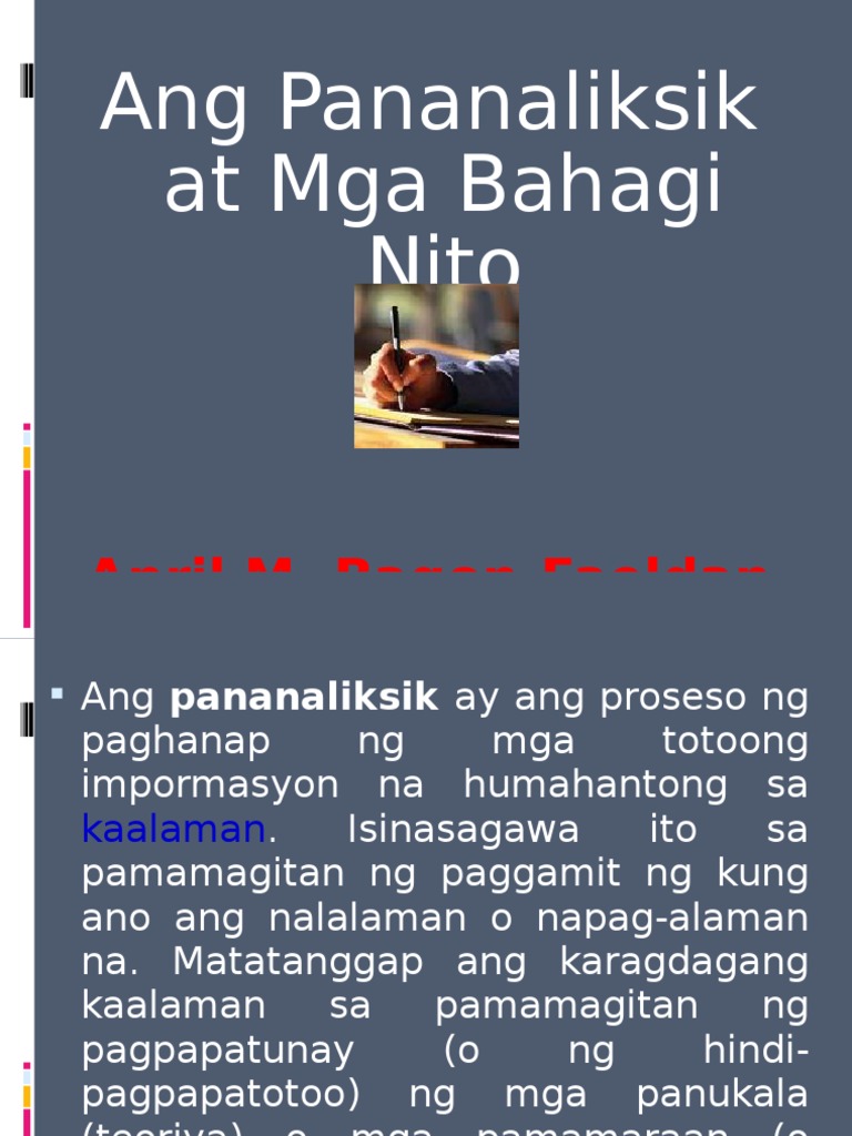 Pananaliksik Ang Pananaliksik Ay Ang Proseso Ng Paghanap Ng Mga Totoong Impormasyon Na Humahantong Sa Kaalaman Isinasagawa Ito Sa Pamamagitan Ng Paggamit Ppt Download