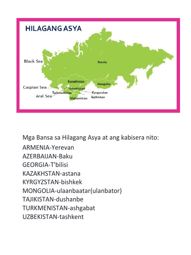 Mga bansa sa hilagang asya at kapital nito. Frequently Asked Questions About Mga Bansa sa Asya. Ang mga bansang bumubuo nito ay Uzbekistan Tajikistan Kyrgyzstan Kazakhstan. Mga Bansa Sa Asya at ang Kabisera.
