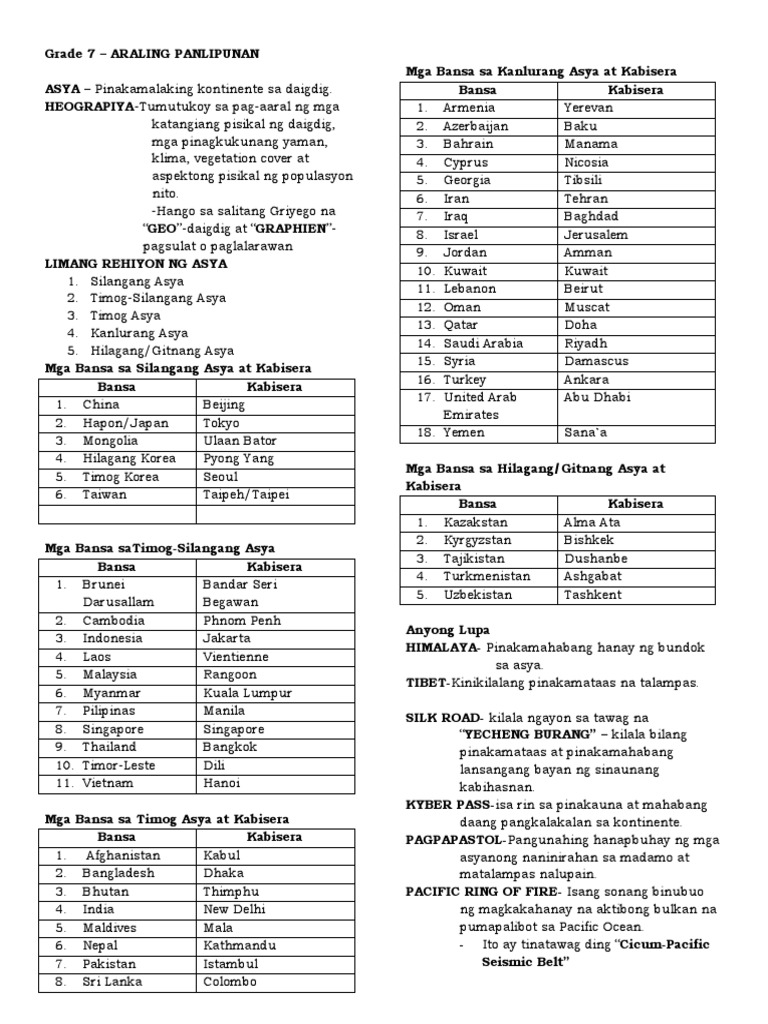 Start studying Mga Bansa Sa kanluran asya at Mga kabisera nito. Hilagang asya at kapital ng mga bansa. 7112020 Land of Celestial Mountains dahil 10 lamang mga mababang kabundukan sa kabuuan.